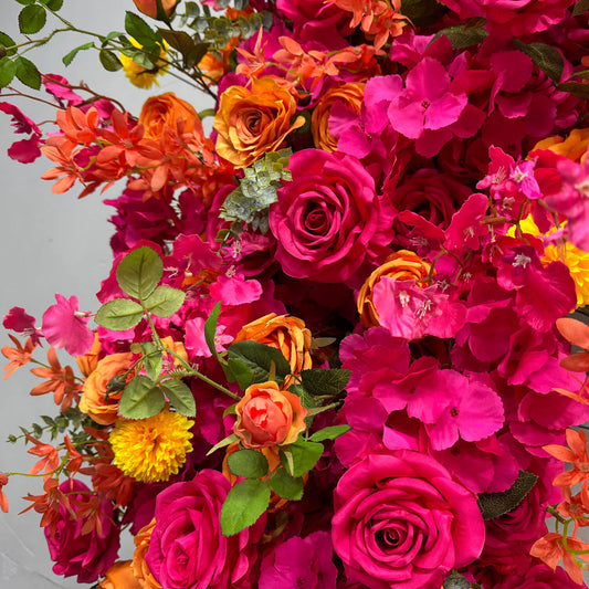 Hot Pink Heart Shaped Flower Wall Wedding Decoration