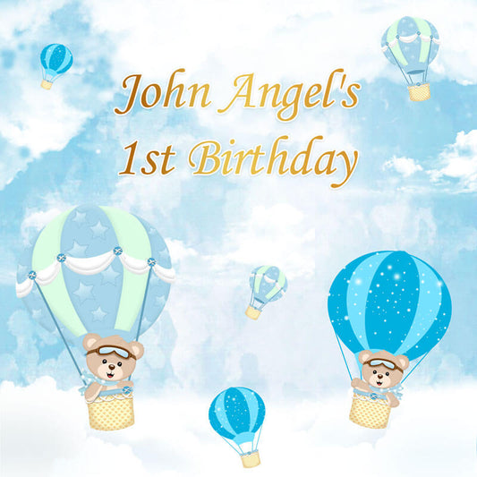 Bear and Hot Air Balloon Backdrop for 1st Birthday Party Decoration - Designed, Printed & Shipped