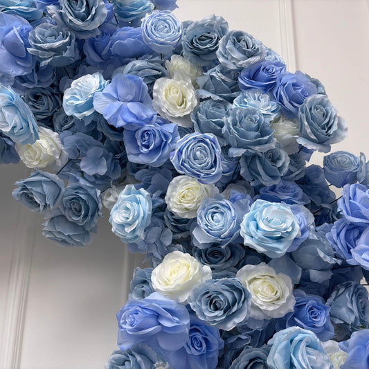 Blue Roses Heart Shaped Flower Wall For Baby Shower Decoration