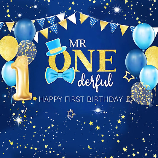 Happy 1st Birthday Backdrop Blue First Birthday Backdrop