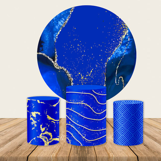 Luxury Blue Gold Marble Birthday Party Backdrop Round Cover