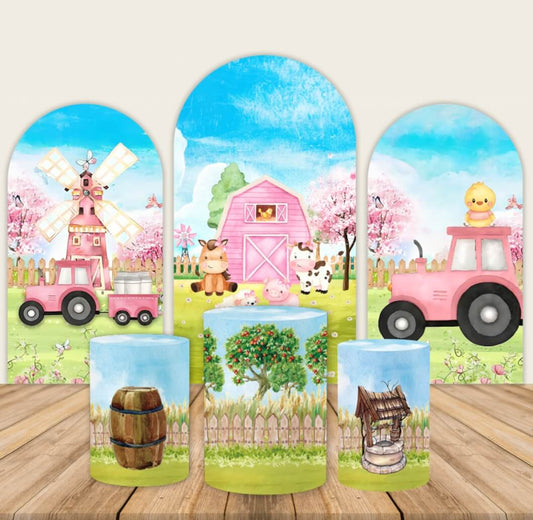 Farm theme Arched Wall Backdrops Barn House Boy Birthday Party