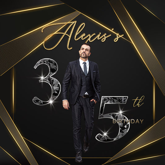 Gold Line Men's 35th Birthday Party Backdrop Decoration