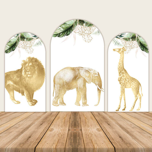 Shining Gold Jungle Animals Kids Birthday Party Backdrops