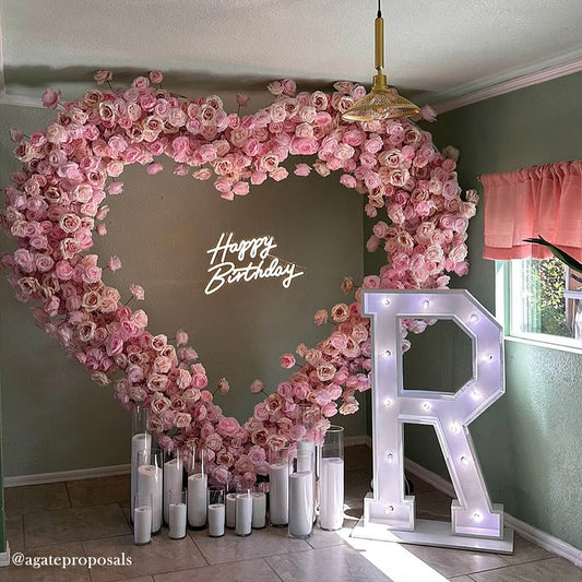 Pink Rose Heart Shaped Flower Wall Wedding Decoration