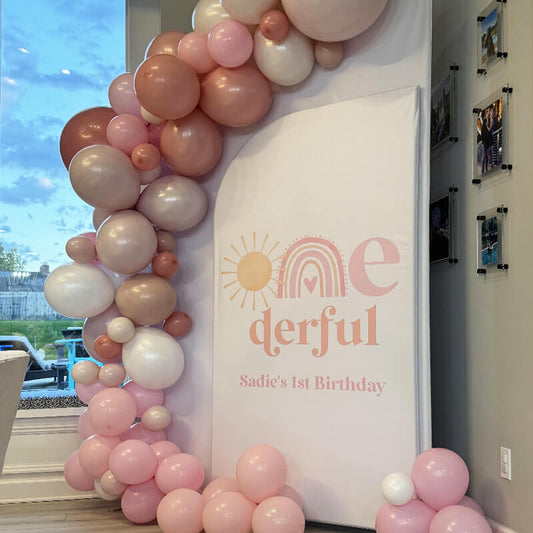 Groovy One Birthday Pink Flower Arch Backdrop Cover