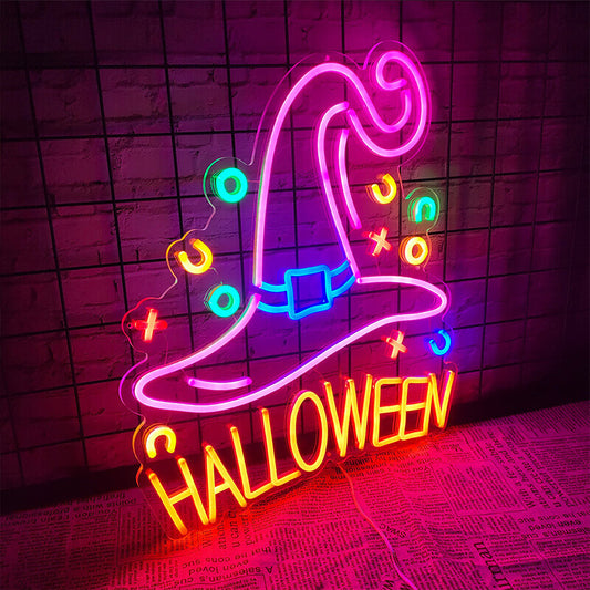 Halloween LED Neon Lights Witch Magic Hat Pumpkin Atmosphere Lights