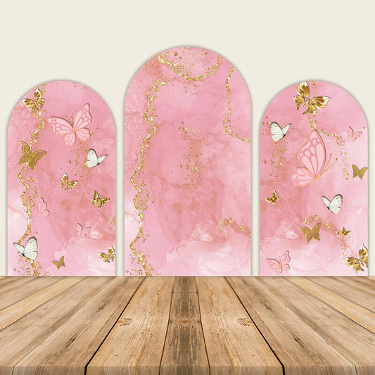 Butterflies Flowers Pink Wedding Party Round Backdrop Cover