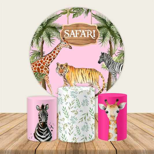 Jungle Wild Pink Themed Baby Shower Party Round Backdrop