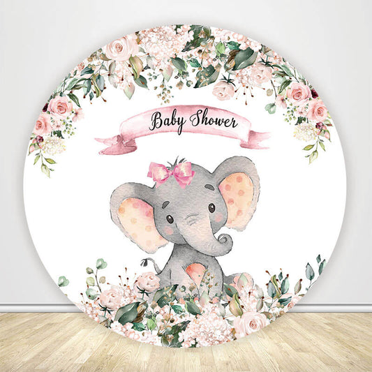 Pink Elephant Girl Baby Shower Round Backdrop Cover