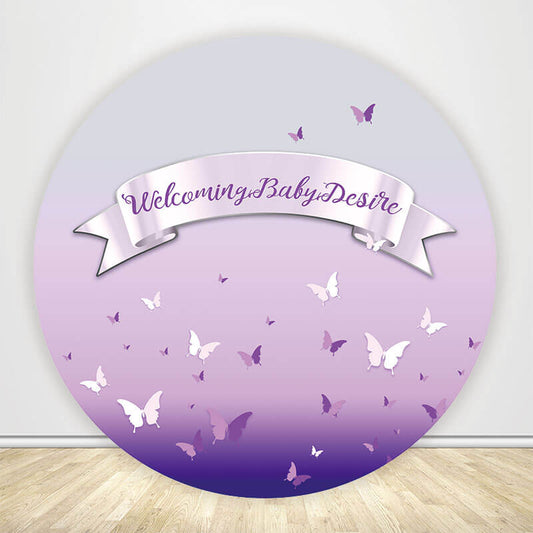 Purple Butterfly Baby Shower Round Backdrop Cover