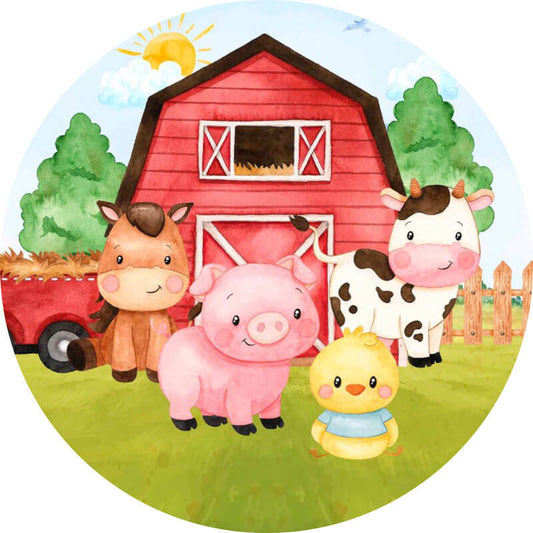 Custom Farm Theme Round Backdrop Red Barn Birthday Party Banner - Designed, Printed & Shipped