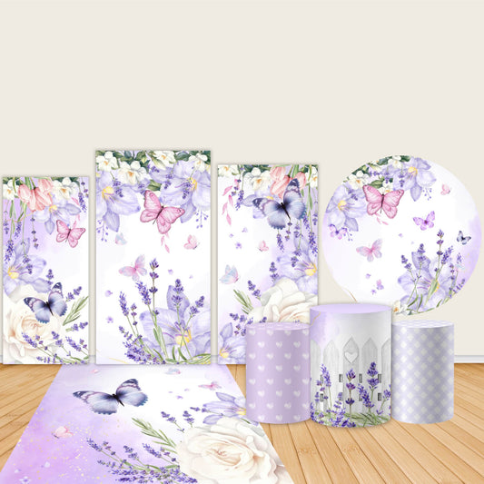 Purple Butterfly Flower Theme Aesthetic Party Backdrop