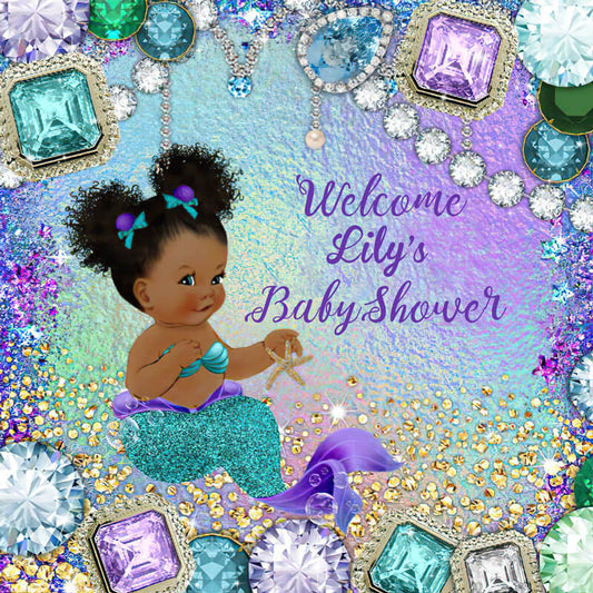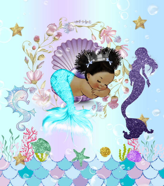 Little Mermaid Backdrop Mermaid Tail Baby Shower Decoration Banner - Designed, Printed & Shipped