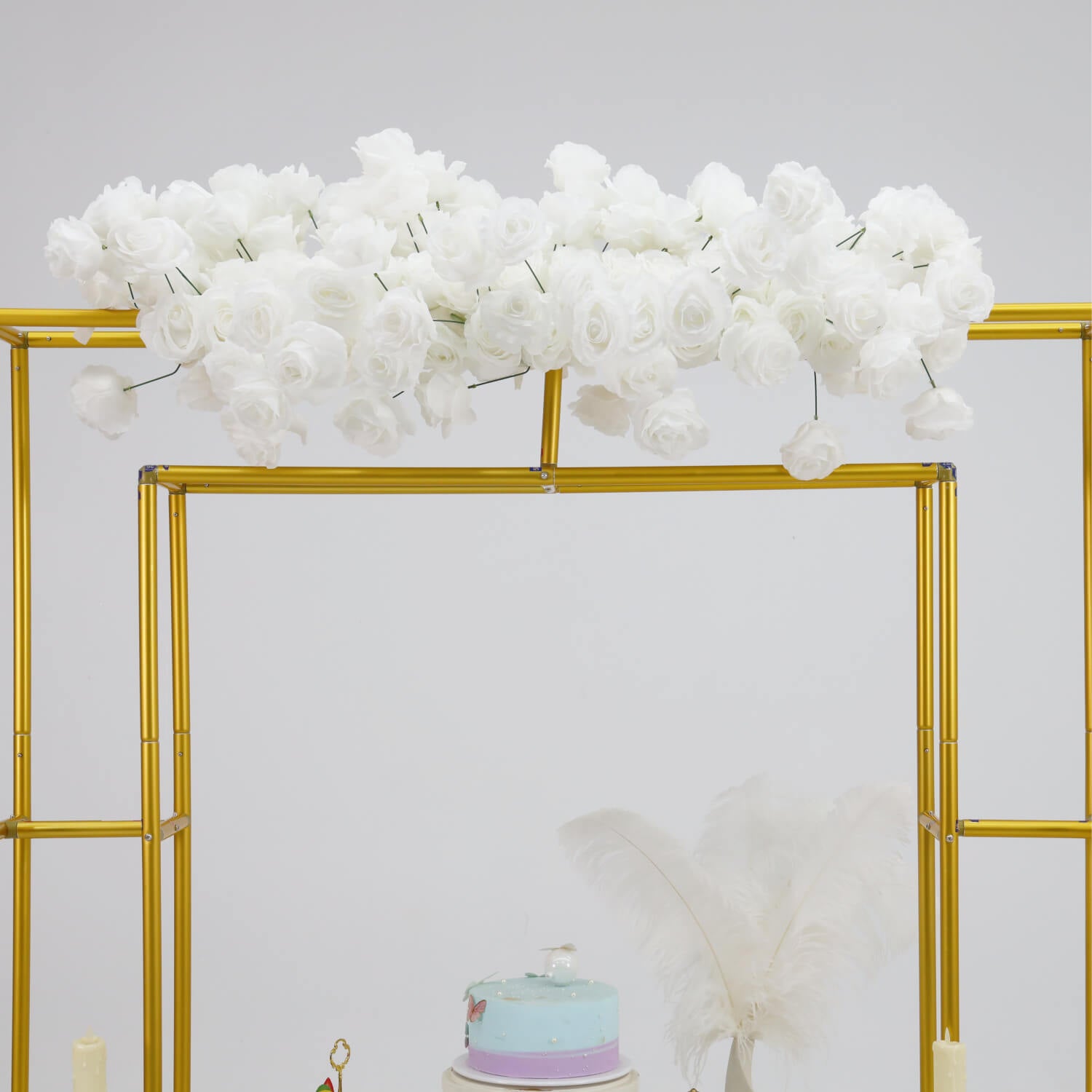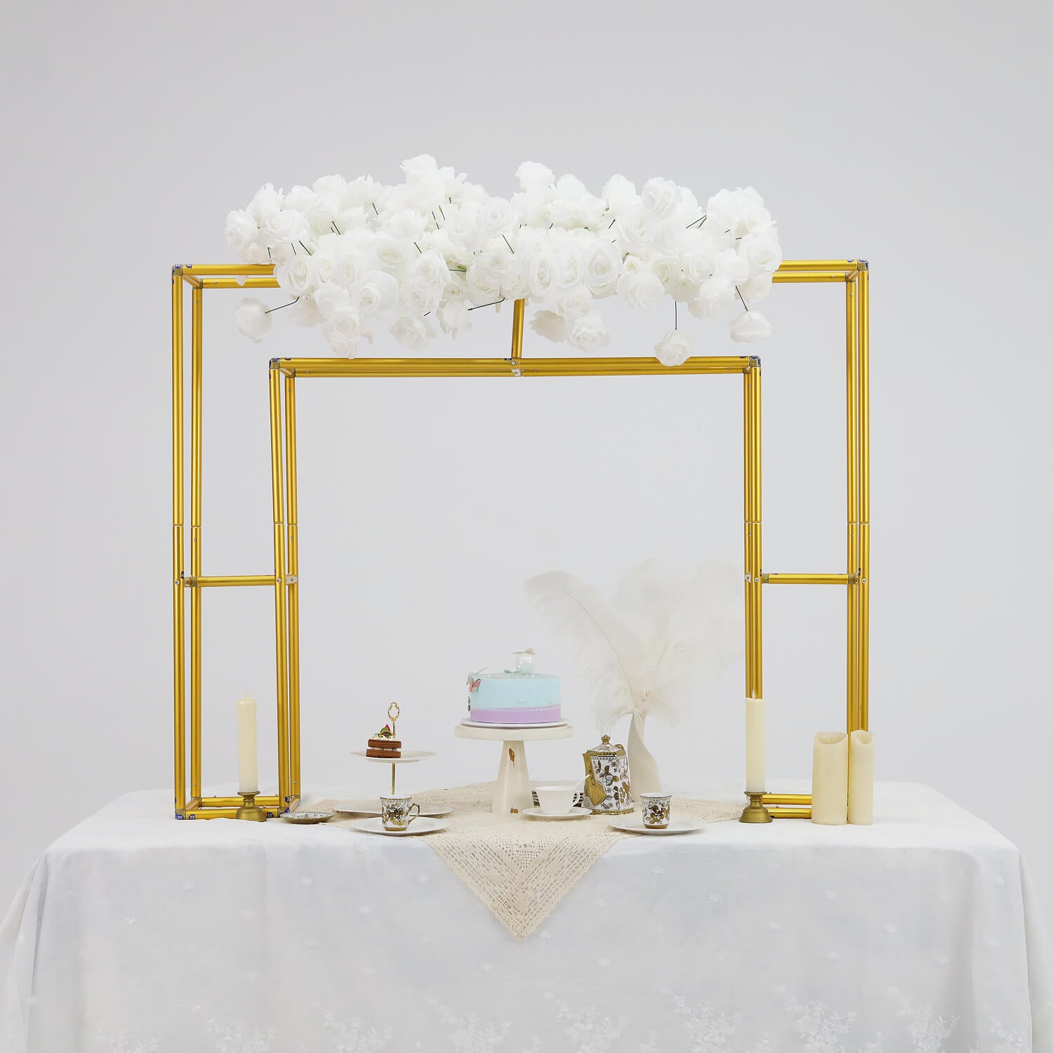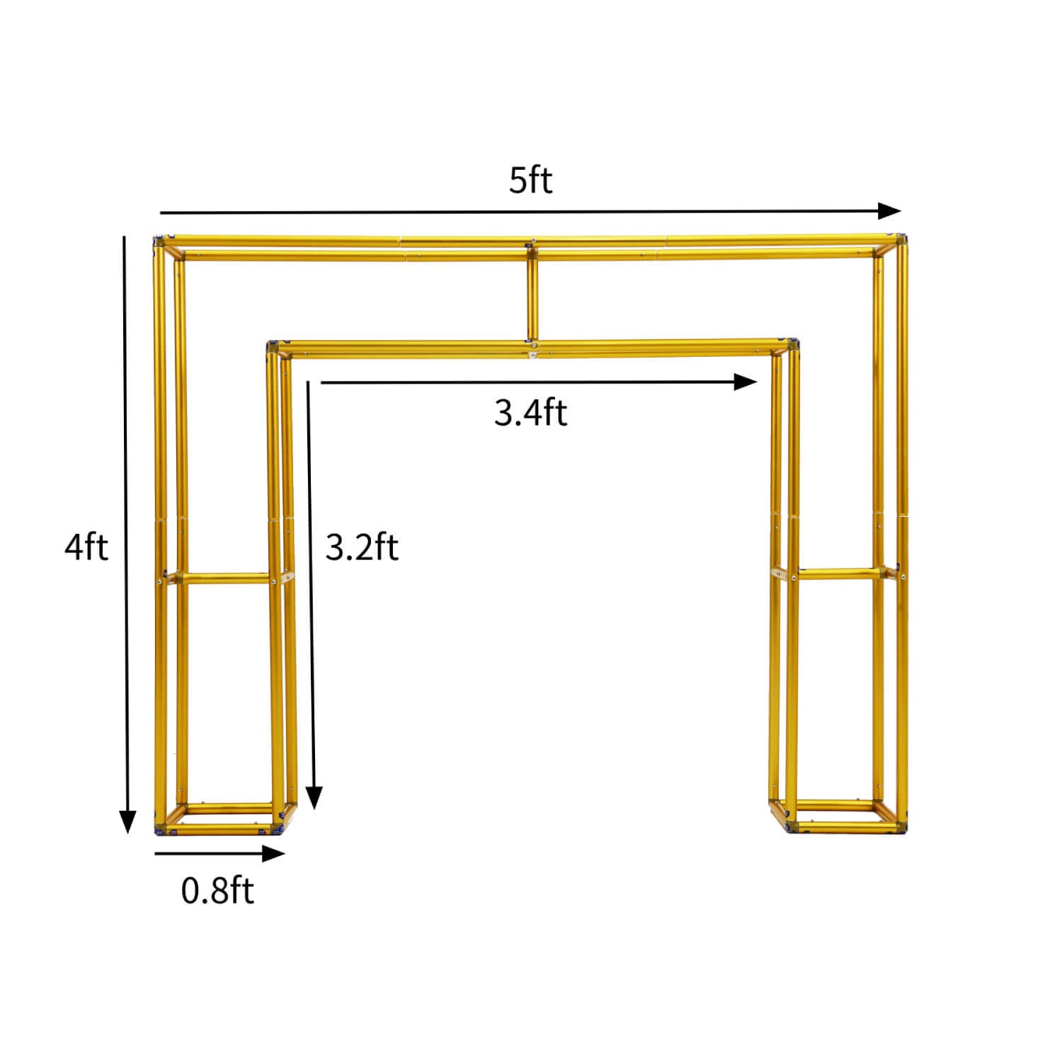 Add a touch of elegance to your event with this 4x5ft Gold Table Centerpiece Arch Frame Stand. Crafted from sturdy metal with a sleek gold finish, this frame provides a stylish base for floral arrangements, balloons, or fabric draping. Its arch shape makes it ideal for table centerpieces, dessert tables, or sweetheart table backdrops. Perfect for weddings, birthdays, baby showers, and all kinds of celebrations. Easy to assemble, lightweight, and reusable for multiple events.